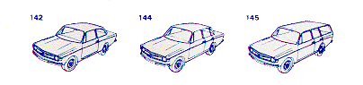 The Volvo parts market was also developing and growing. Surveys indicated that the typical Volvo owner kept his or her car longer and drove it farther than many other makes. Routine maintenance was the reason that many Volvos rolled up more than 100,000 miles on their odometers. This may not appear to be hot news today, but back in the 60s good maintenance seemed to be an exception. Most cars generally needed more routine maintenance to keep running -- oil filter changes at 1,500 miles/2,414 km, suspension lubrication at 3,000 miles/4,800 km, tune-ups at 5,000 miles/8,000 km and even routine valve jobs at 25,000 miles/40,000 km! It seemed like most cars back then always needed something ... Unlike the European car buyer, many North Americans would purchase a new car every twelve to eighteen months. Whether a domestic car or an import, the trend was to get rid of the thing before it needs parts. It was easy to skip needed maintenance or repairs by purchasing a new car. Most large manufacturers restyled the same cars over and over again just to keep this cycle (called planned obsolescence) going. This was to change in time. It seemed that a small but growing number of family car buyers wanted to go against this existing trend. They were keeping their cars longer, following maintenance schedules and buying only quality parts. This new trend considered practical ideas like car safety, insurance, depreciation, economy, routine maintenance and total operating costs. The market was changing and Volvo was preparing for this change. Plans were made in June of 1960 for a totally new Volvo compact-sized sedan to succeed the P120 and PV. The 140, originally named both the P660 and 1400, was officially introduced in the fall of 1966 in Sweden. The first year for the 140 in the United States was 1967, and a record number of Volvos (33,189) were sold. Improvements to engine, drive train, suspension and electrical parts from the P120 were combined with a new, larger, modern body. The 140 was a leap ahead of the P120s and PVs in the areas of comfort, roominess and luxury. In 1967 not many five-passenger sedans could average more than 20 miles per gallon, exceed 100 miles per hour, stop faster than many sports cars and, with decent care, go past 100,000 miles before needing major engine work. The 140 could. More safety features were built into these cars than any other previous one. Volvo safety design reached a higher level of detail and precision with the introduction of the 140. Many people feel that these cars were largely responsible for starting Volvols reputation for safety in North America. In addition to the 144S (four cylinder, four doors, "sport" engine), a 142S (the "2" meaning two doors) and a 145S ("5" meaning five doors -- station wagon) were introduced. A total of 1,205,111 140 cars were produced from 1966 through 1974. The 140 was a success all over the world. TIP: The successor to the 140 is the 240 (covered in Workbook No.2). Don't combine them in your thinking -- for parts purposes, they are two entirely different cars. Engine All 140 used the four-cylinder, five main bearing overhead valve gasoline engine already described in the P120 and PV. A diesel engine was never available for these cars. Both engines' size and fuel systems changed throughout the years. Study the engine designation table below and familiarize yourself with the engine identification numbers:
