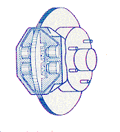TIP: The name of the manufacturer is cast onto all calipers. It is needed when ordering brake pads, caliper rebuild kits or exchange calipers. Get the name before requesting your parts! Disc brake pads are available f or all front and rear calipers on 140 cars. The pads are sold in sets of two. Both front wheels and/or both rear wheels must be replaced at the same time. Brake pads for one wheel only are not available. TIP: The Owner's Manual recommends checking the linings every 6,000 miles/10,000 km. Brake pads that are worn out will cause a screeching, scratchy sound. Worn-out pads can seriously damage the brake rotors (also called disc brakes). As with any disc brake system, the pads should be inspected regularly. Be aware that a customer may need new rotors in addition to pads. All 140s had solid, non-vented brake rotors (except the 1971 142E -- the front rotors were ventilated) on all four wheels. A small drum brake was designed into the left and right rear rotor hubs. A small set of brake shoes are contained inside the hub and act as the parking brake. Both sets of brake shoes in each hub are operated by one cable.
