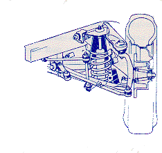 In time, the cable will stretch out of adjustment and need to be replaced. The brake shoes will also need replacement eventually. The master cylinder is located on the left side of the engine, attached to the power brake booster. Both rebuild kits and entirely new master cylinders are available. Suspension / Steering The 140 Volvos have an independent coil spring front suspension that uses upper and lower wishbones (also called "All arms, control arms) connected to a front crossmember. Upper and lower ball joints are pressed into each wishbone and connect the steering knuckles to the wishbones. A stabilizer bar (also called anti-roll bar, sway bar) is also included on the front end. Parts that should be replaced because of wear or age include: