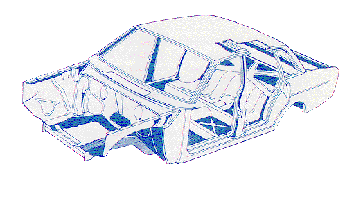 An important feature of the 140 steering system (P120 and PV also) was the ability of the steering shaft to collapse in a severe front-end collision. A special connector pin that joins the two-piece steering column shears off when forced. This helps to stop the driver from being impaled on the steering wheel shaft in a bad head-on crash. This feature was introduced on all Volvos in 1956 -- lightyears ahead of any other carmaker. Power steering (P/S) was introduced on the 140 during 1973 but only as an option on automatic transmission cars. In 1974 it became standard equipment on all cars with an automatic. In addition to the above parts, the P/S pump belt should be replaced as needed. The P/S pump and pressure lines usually need replacement only when they fail to work. TIP: Someone that needs power-steering fluid is really asking for automatic transmission fluid (ATF). All Volvo power steering systems up through 1986 use Volvo-approved ATF (type "A," NOT type 'IF"). The stock suspension and steering helped produce a comfortable ride, moderate body roll and predictable handling. Throughout the 1970s, a variety of optional handling packages (shocks, springs, stabilizer bars and bushings) were available for the 140. The Volvo Competition Service Department, at the time, provided R-Sport special performance suspension parts and technical advice. Although this department no longer exists, the R-Sport name (and spirit!) continues in use today for specific genuine Volvo parts and accessories. Body The 142, 144 and 145 model bodies are refinements of the unit-type construction of earlier Volvos. An average of 350 sheet metal component parts and 90 different subassemblies (groups of smaller parts) were used in a 140 body. Every body was manuf actured from large panel section parts that were spot welded together. The finished 140 body contained the following features: